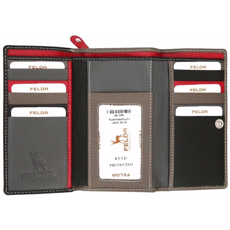 Felda Womens Genuine Soft Leather Clutch Wallet - RFID Protection, Leather Wallet - Mushroom Multi
