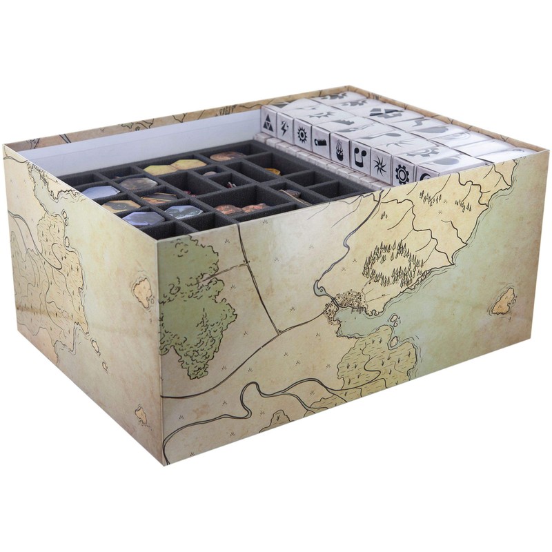 • Feldherr foam set for Gloomhaven. Three stackable inserts for the original board game box provide order and protection for your game components. The set is ready to use: no assembling necessary.