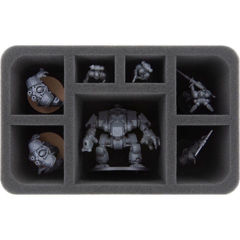 - Feldherr Half size foam insert with 7 compartments to safely store a dreadnought and 6 other Space Marines miniatures