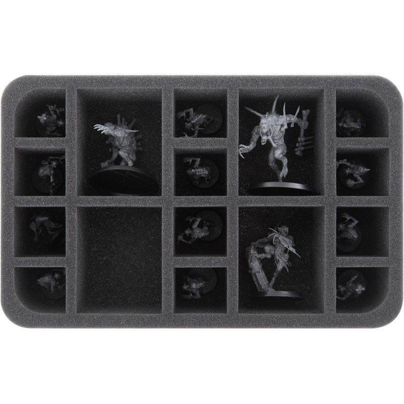Two half-size inserts provide a safe place for all Ghoul miniatures from the GW basic box. Custom-fit compartments for each individual model ensure that the figures do not slip around or bump into each other during transport. This means that the colours of the painted Flesh-eater courts are completely safe from abrasion and scratches.