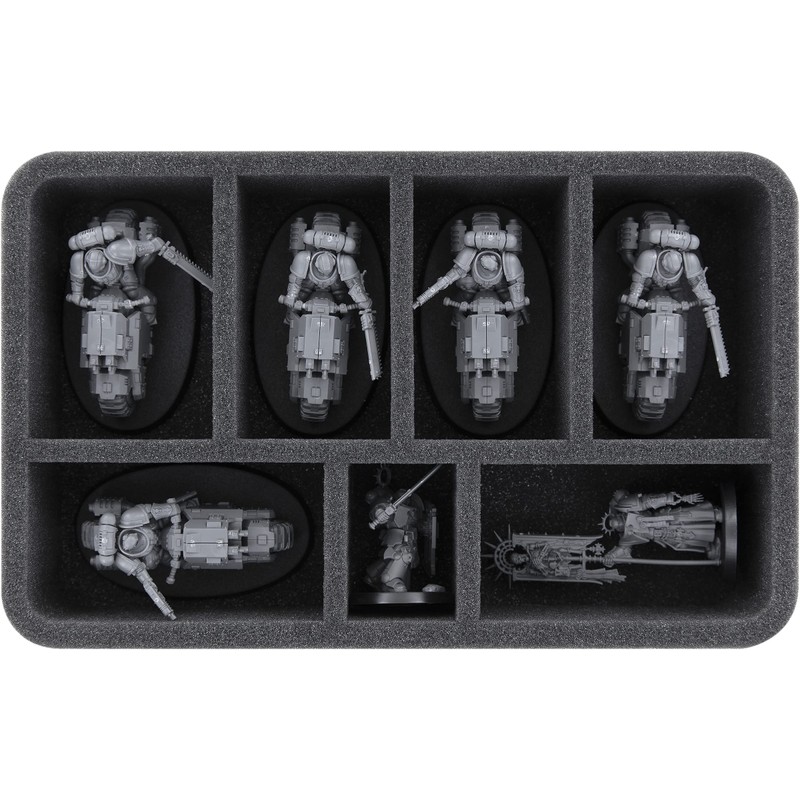 - 1 half-size foam insert for 1 Primaris Captain, 5 storm intercessors, 1 Highlord and 3 Kanoptech scarab swarms (HSLM050BO)
