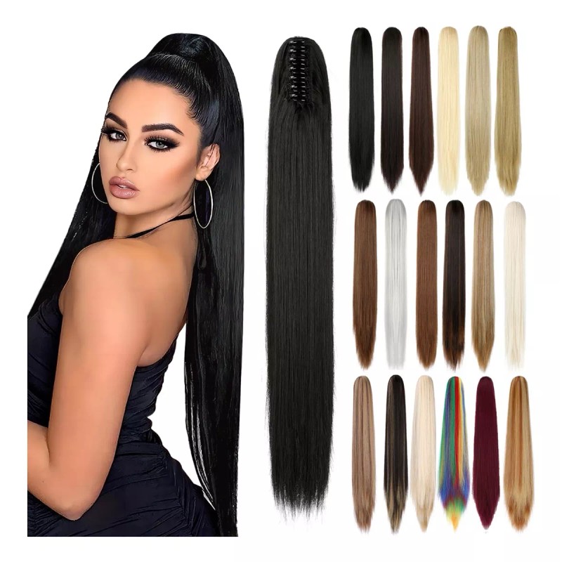 Felendy Extensiones De Cola De Caballo Clip Garra Recta 21 Pulgadas