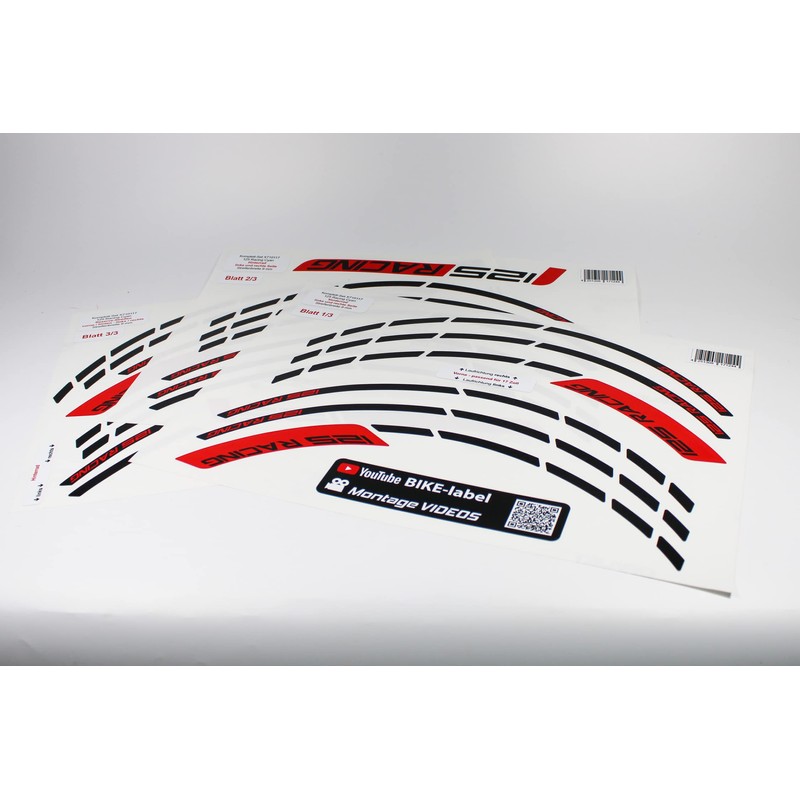 - Sticker for rims sufficient for both wheels (left and right side) and includes replacement strips, should go wrong during installation (see overview picture)
