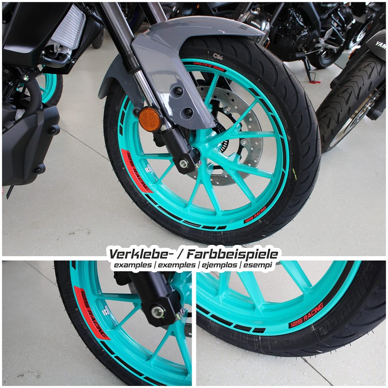Felgenrand Aufkleber Rim Sticker Red Black Compatible with Yamaha MT-125 Cyan Storm X710117