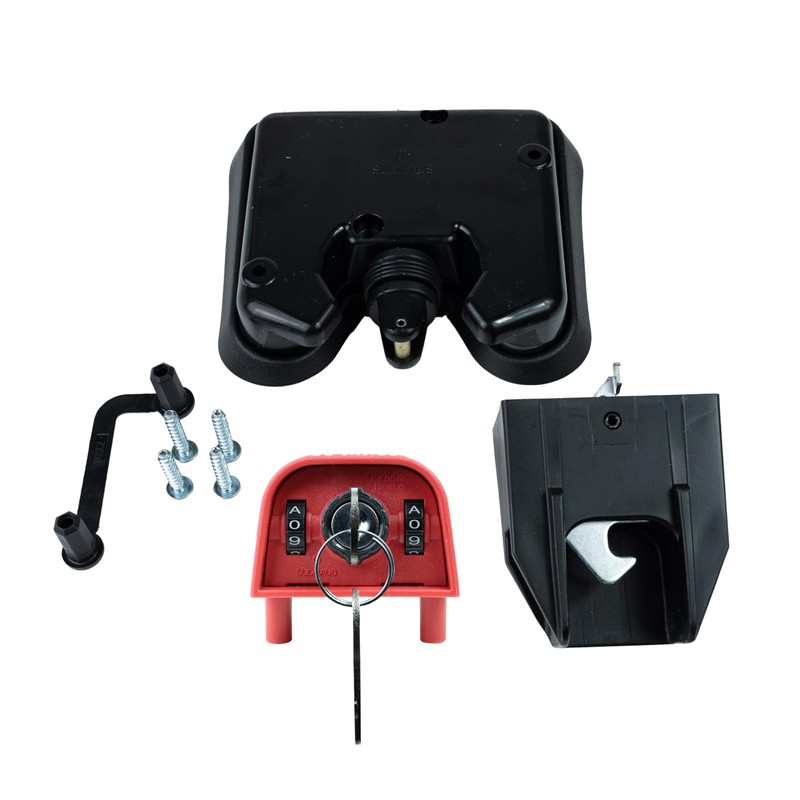 - Lock with key and combination lock. With the two keys, the lock can be easily closed or opened. The two integrated combination wheels allow an individual code from 225 different combinations