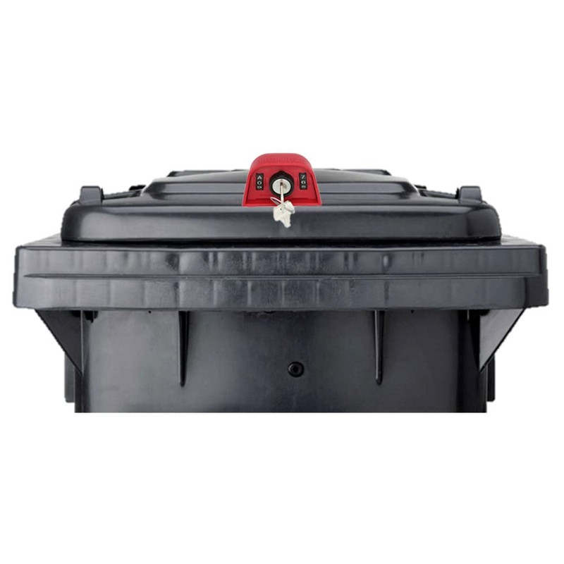 - The wheelie bin lock protects against unauthorised access and ensures that only your own rubbish gets in. For emptying, the lock opens and closes on the disposal vehicle independently and by itself when tilted