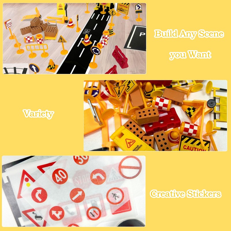 Felicify Construction Traffic Sign Set, 45PCS Construction Sign Toys Set, Mini Construction Accessories, Miniature Traffic Barricade Signs, Toys for Children Early Age Development