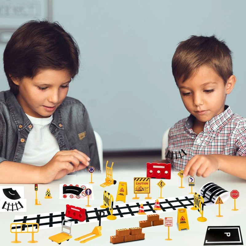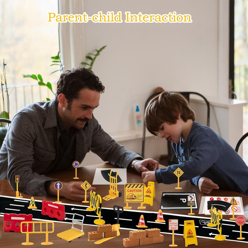 Felicify Construction Traffic Sign Set, 45PCS Construction Sign Toys Set, Mini Construction Accessories, Miniature Traffic Barricade Signs, Toys for Children Early Age Development