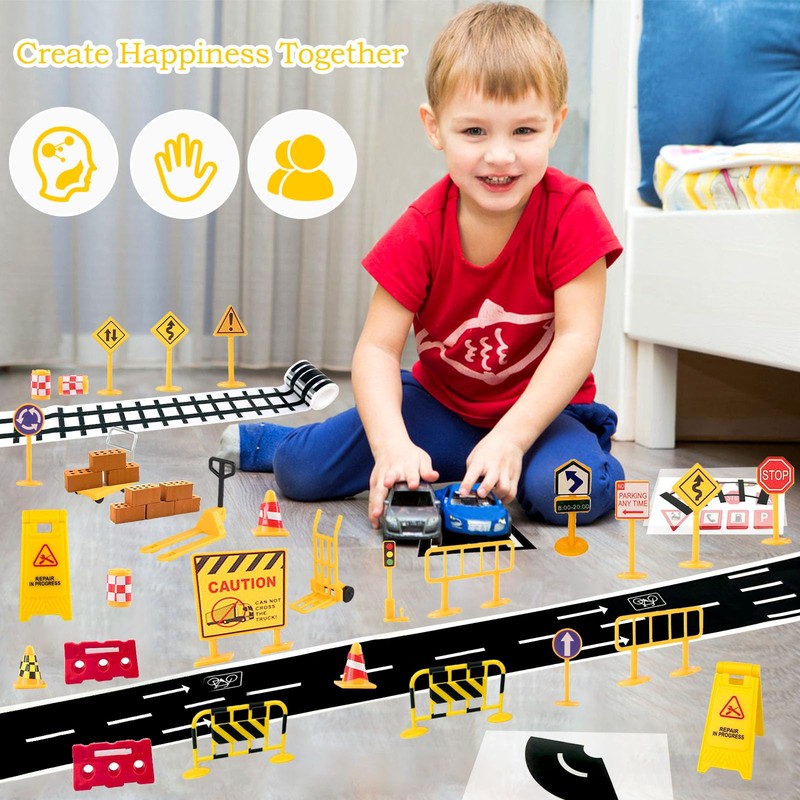 Felicify Construction Traffic Sign Set, 45PCS Construction Sign Toys Set, Min...