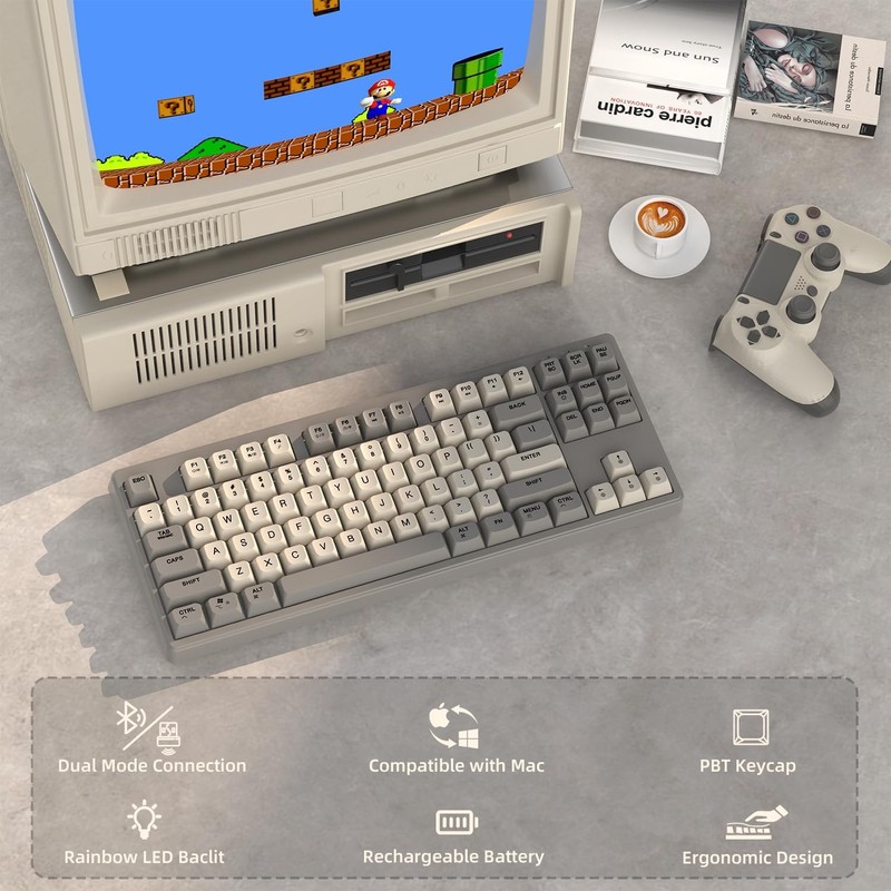 - 【Mechanical Feeling Keyboard】The M87 TKL keyboard is designed to provide a mechanical typing feel. It offers a tactile feedback similar to that of mechanical keyboards, enhancing the typing experience for gamers and professionals who prefer a mechanical feel but with the convenience of a wireless keyboard.