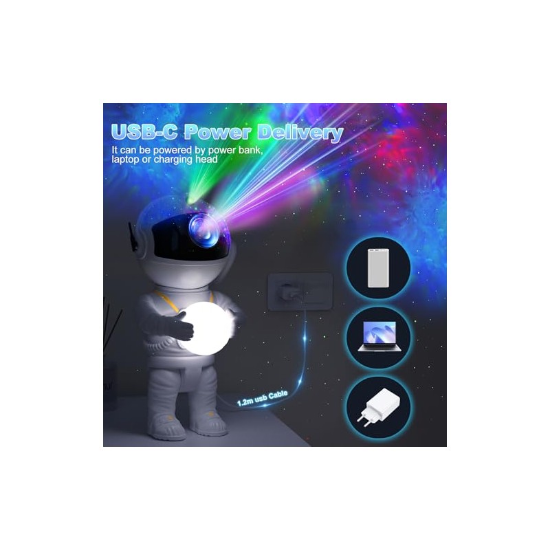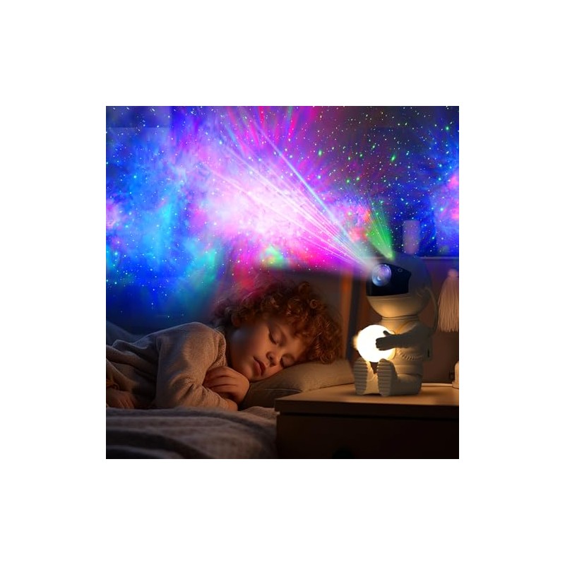 - [5 Farben Mond Kinder Nachtlicht] - Der kleine Mond in den Armen der Astronautenprojektorlampe kann als Nachtlicht verwendet werden. Er hat fnf Farben: Rot, Wei?, Blau, Grn und Farbverlauf. Es kann gleichzeitig mit Nebeln und Sternen aufleuchten, oder es kann alleine aufleuchten. Ob als Ornamente oder als Nachtlicht fr Kinder, diese Astronauten Projektorlampe ist perfekt.