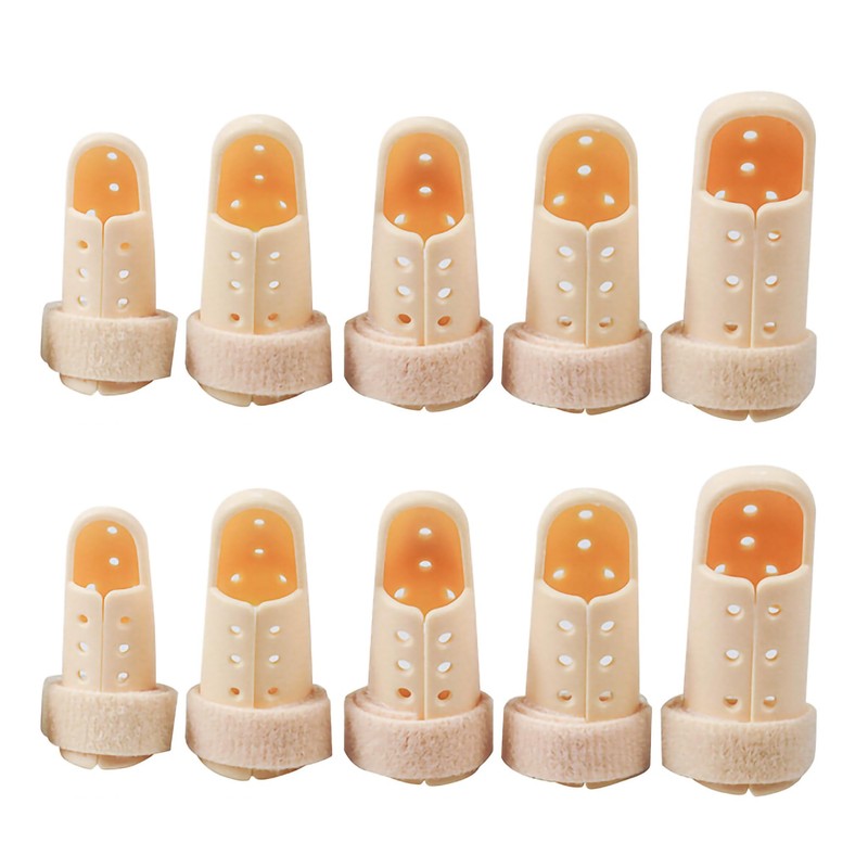 • お好きなサイズで着用できるセット:親指から小指まで、手の大小にかかわらず幅広く対応できる1号から5号までの5サイズ各2点、合計10点セットでお届けします。指の第2関節あたりまでを優しくカバーしてフィット感を調整しながら固定できます。