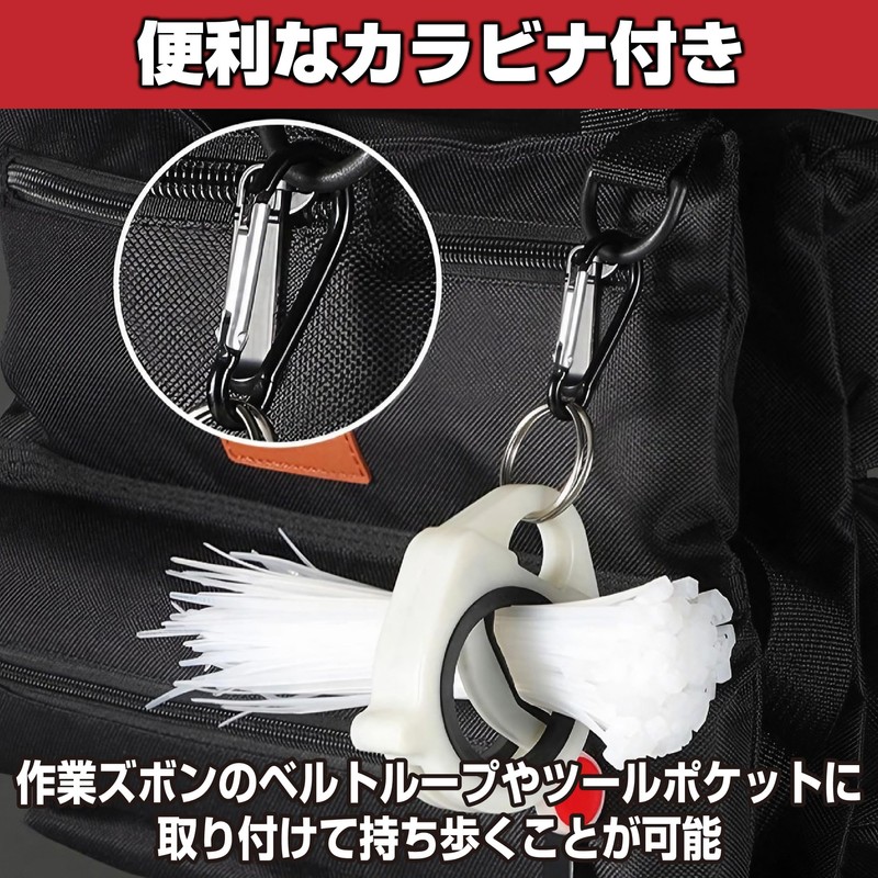 • Convenient Carabiner Included: The cable holder with a carabiner allows you to attach it to your work pants belt loop or tool pocket to carry it around with you. If you want to carry your cable ties together and take them with you