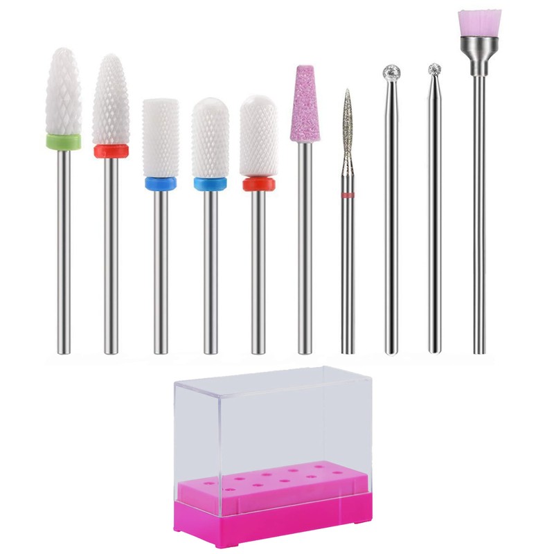 Felimoa Nail Machine Drill Bits Nail Art Drill Bit Stand Included, Set of 10