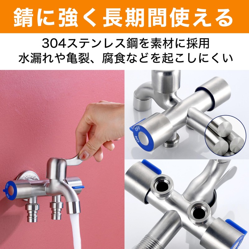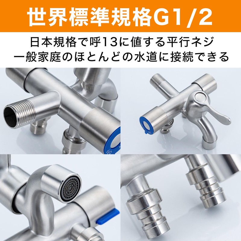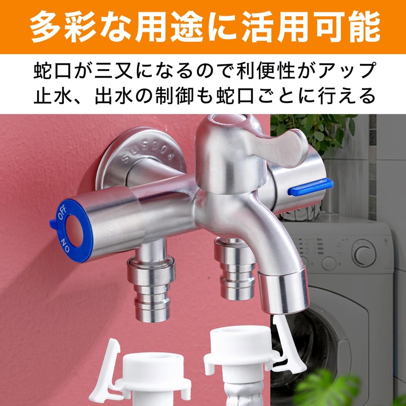 - High Versatility with World Standard G1/2: This three way branch faucet fittings are a parallel screw worthy of G1/2 standard and Japanese standard 13. The versatility of this product can be connected to most faucets in a general household. It can be used in a wide range of applications such as washing machines, kitchens, outdoor watering or car washing