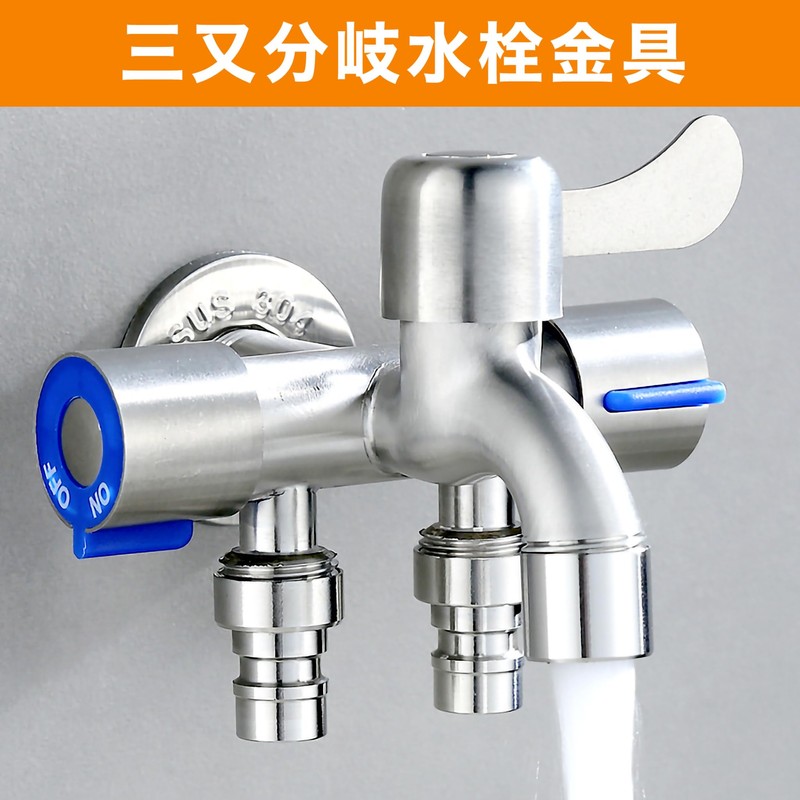 Felimoa Three-way Branch Faucet Metal Fittings, 304 Stainless Steel, Parallel Screw