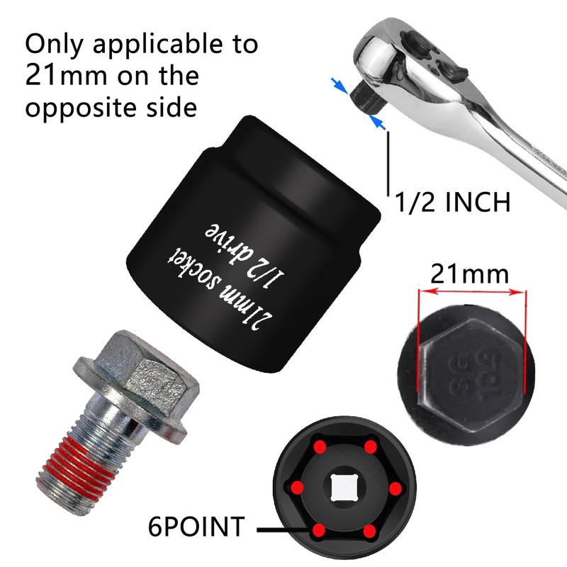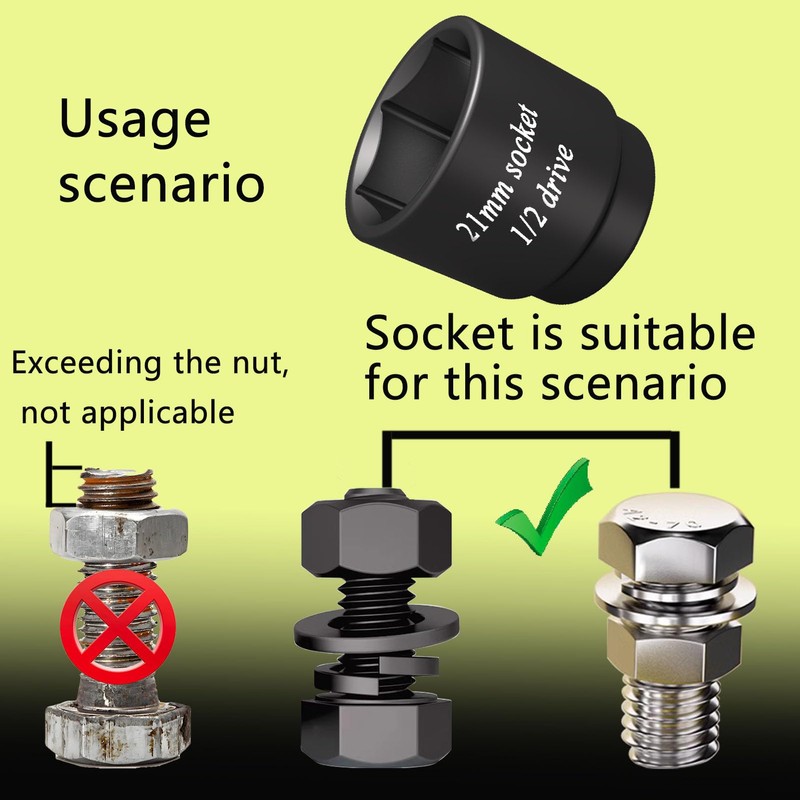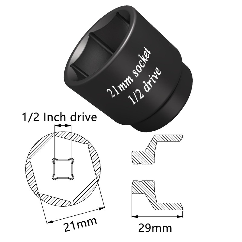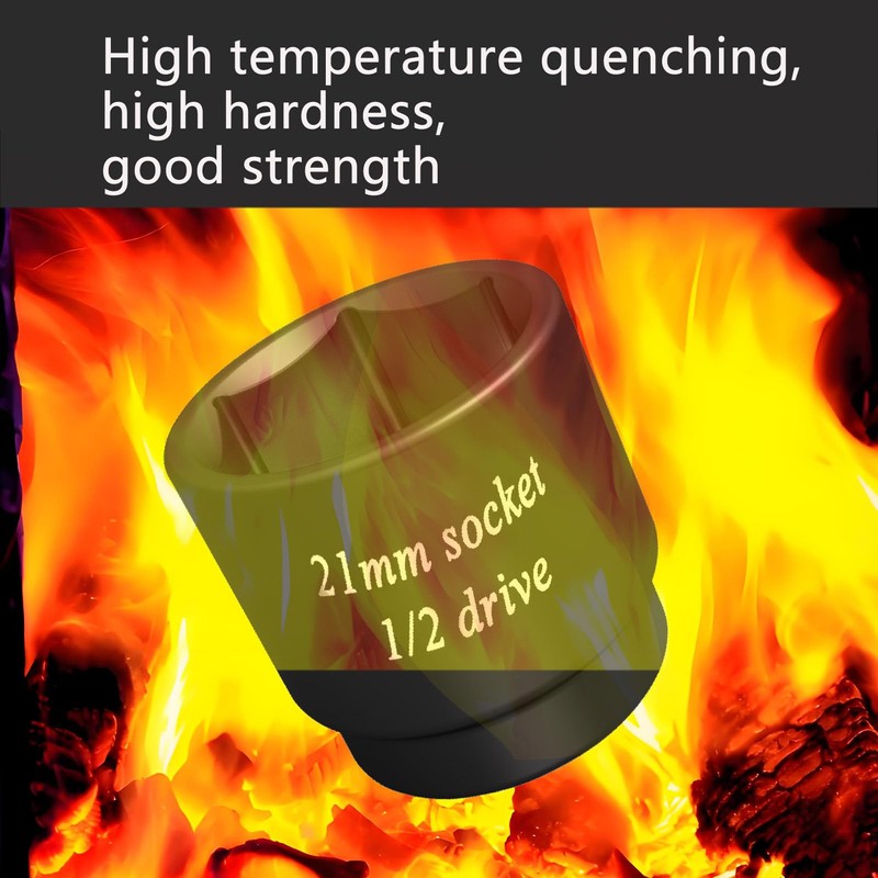 Low Profile . our The low-profile design socket Combined with a 1/2 drive Can be used in small spacesthat the ratchet used is 1/2inch drive High temperature quenching for higher strength and durability The 6-point hex features rounded corners to create a tighter fit while also preventing the socket from binding or rounding off the NutThe socket text is laser engraved, durable and will never fall offThe socket is made by CNC precision machining, with precise dimensions and a tighter fit with the nut