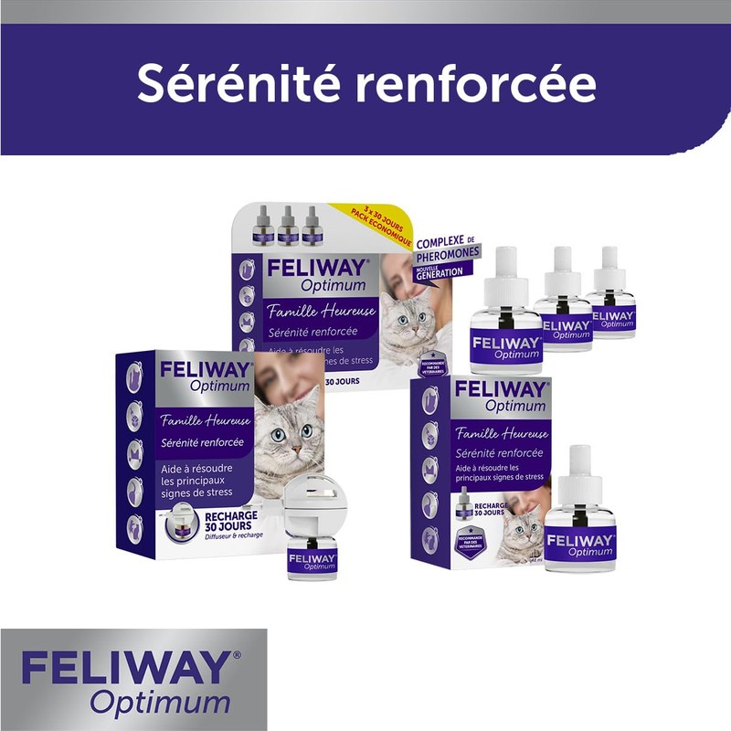 FELIWAY Optimum Anti-Stress for Cats - Calming Pheromone Complex for Improved Serenity - Value Pack of 3 Refills (3 x 30 Days)