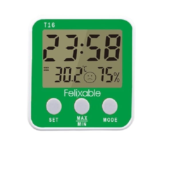 Felixable T16 Digital Hygrometer Indoor Thermometer Max/Min Records Room Temperature °C /°F and Humidity Monitor with Large Screen for Home Greenhouse Wine Cellar Kitchen Kids Room Office Time&Alarm