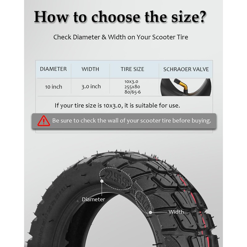 Tire & Tube Size: 10x3.0 /255x80/ 80/65-6 (All three sizes are available)