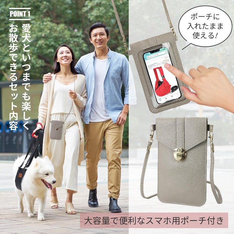 feliz-ganeshaya Dog Nursing Harness, Walking Support, Wide, Waterproof, Adjustable Length, Smartphone Shoulder Set (S Size)