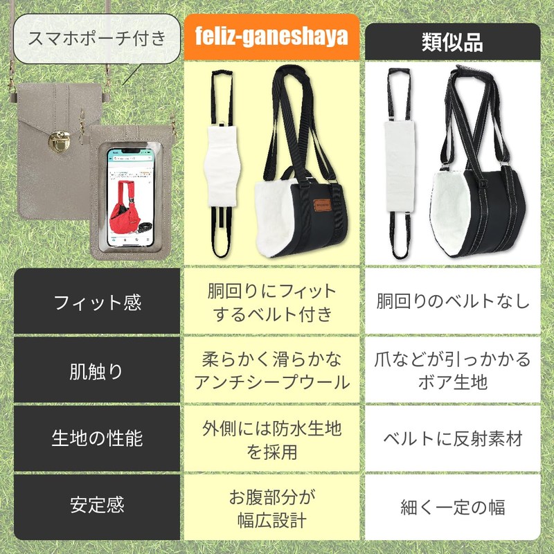 - Convenient smartphone shoulder strap: When using a nursing harness when walking or going out, your hands can be blocked. Therefore, we have prepared a pouch with a refined design that can hold your smartphone, wallet, keys, etc. The clear window on the back allows you to operate your smartphone