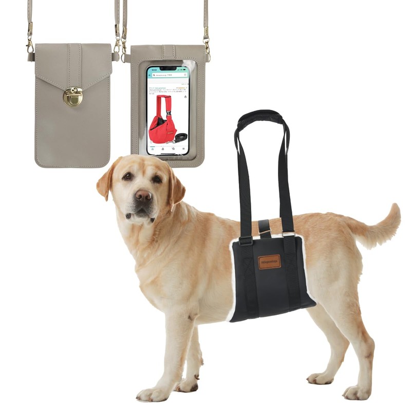feliz-ganeshaya 犬用介護ハーネス 歩行サポート 幅広 防水 長さ調整 スマホショルダーセット (Lサイズ)