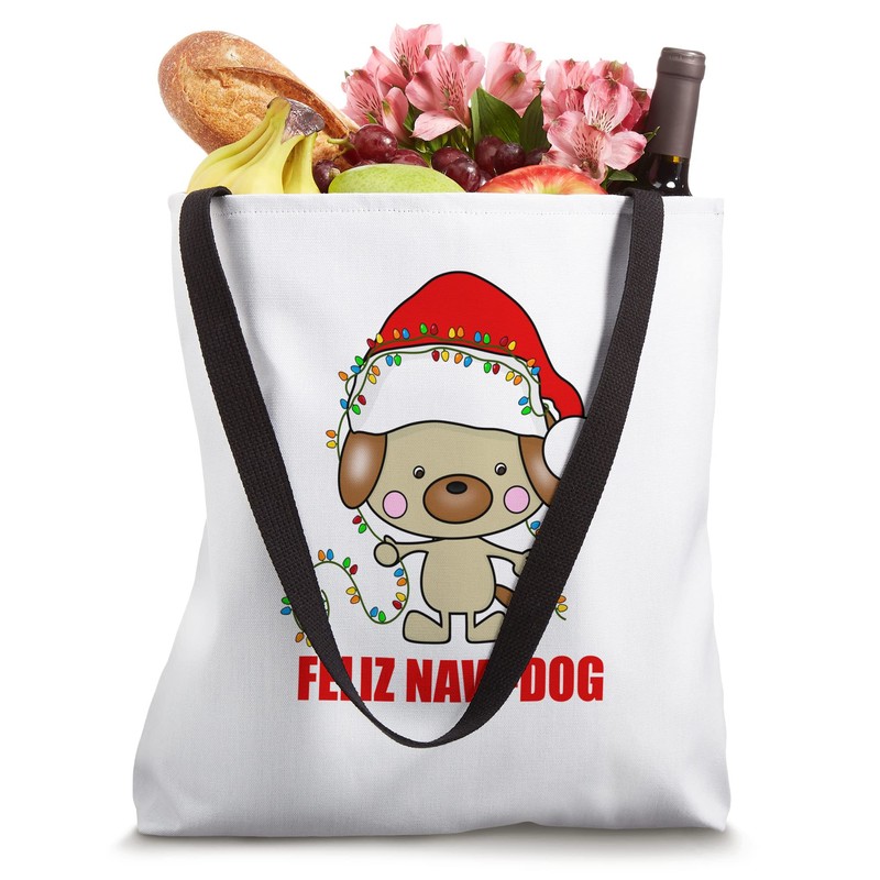 Feliz Navi-Dog Christmas Puppy Holiday Lights Santa Hat Tote Bag