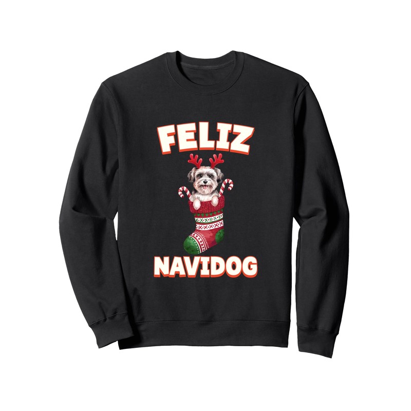 - Feliz Navidog Christmas Dog Sock Havanese, Funny Dog Christmas Design. Show your holiday spirit. Great Christmas party features cute Feliz Navidog Christmas Dog Sock Havanese Puppy Dog with Christmas Santa hat, Reindeer, Christmas tree.