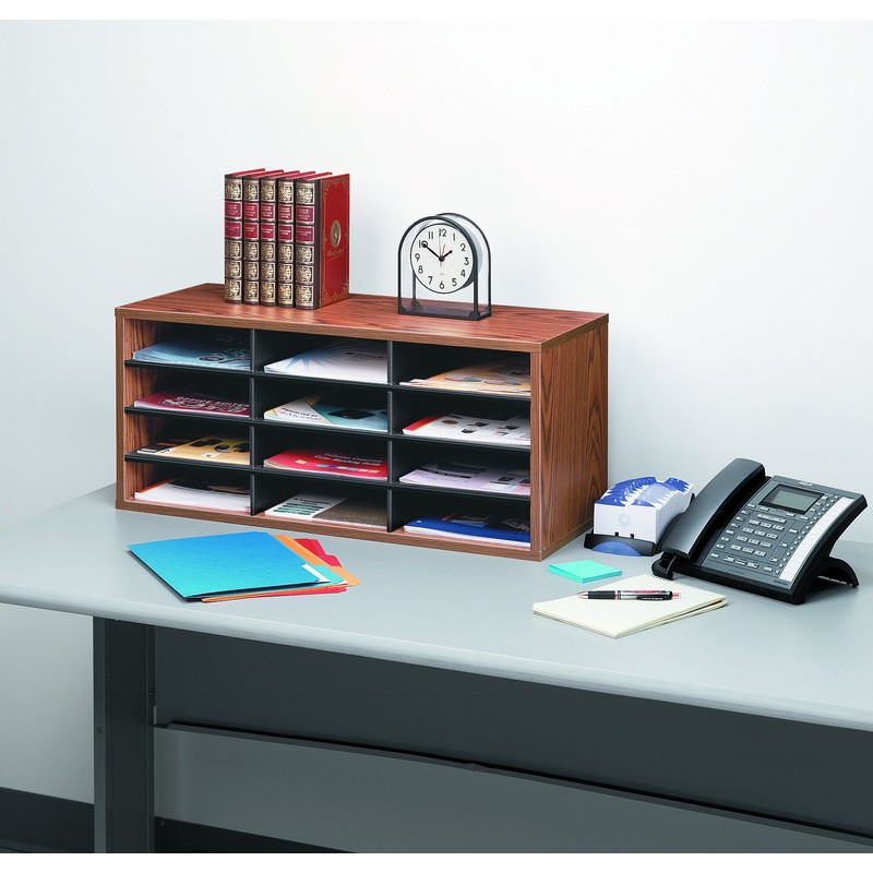 Fellowes 25400 12-Section Compartment Sorter, Melamine Laminated, Medium Oak