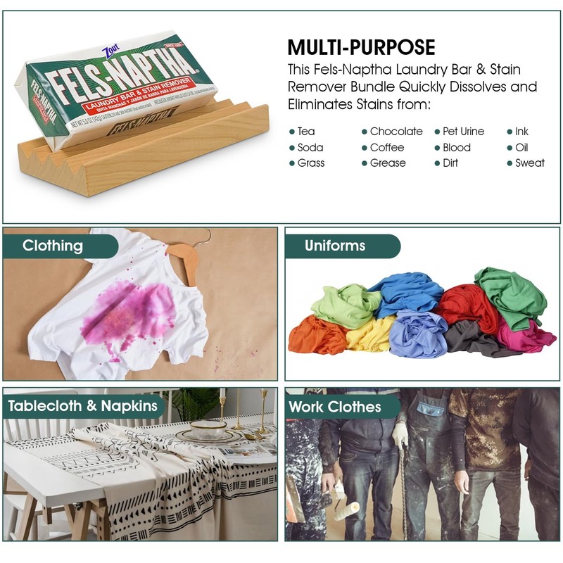 Fels Naptha Laundry Detergent Bar - 5 Ounce Fels Naptha Laundry Bar Soap and Stain Remover Bundle. Get the Ultimate Accessory to your Fels Naptha Soap Bars. (Traditional)
