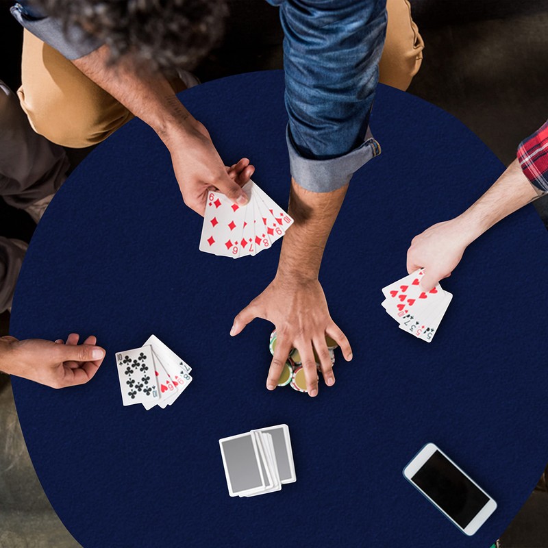 Felt Card Table Game Cover Round Fitted Tablecloth Oval Poker Bridge Games Table Topper Elastic Blue Fits Round Tables 72 Inches
