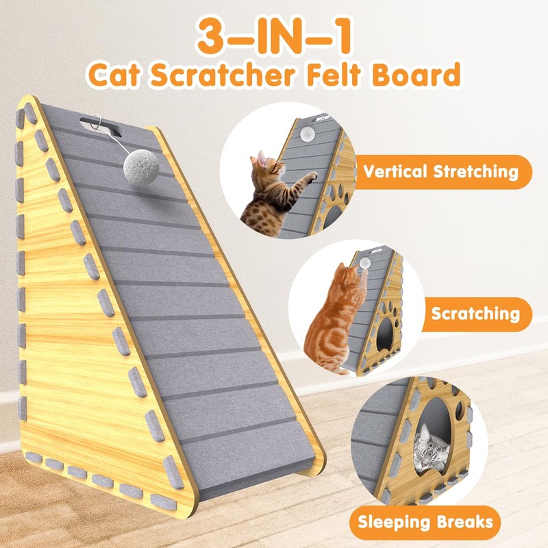 • 3-in-1 Multi-Functional Design: This innovative triangular double purpose felt cat scratcher & bed have three functions, cat scratch pad as a claw sharpener, lounging surface, and play area. our large cat scratcher have two ways to place it - scratch upright or use it horizontally as a ramp, cat scratchers for indoor cats perfect for satisfying your cat’s instincts while keeping them relaxed and entertained