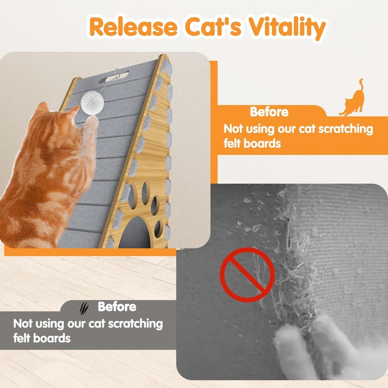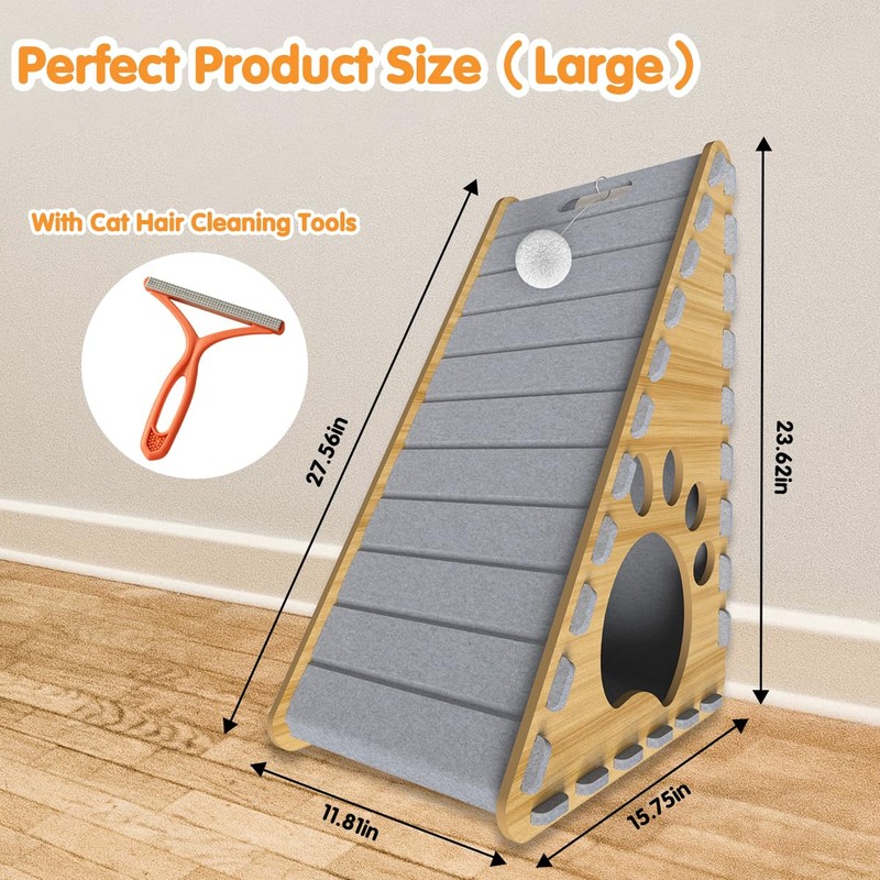 - 3-in-1 Multi-Functional Design: This innovative triangular double purpose felt cat scratcher & bed have three functions, cat scratch pad as a claw sharpener, lounging surface, and play area. our large cat scratcher have two ways to place it - scratch upright or use it horizontally as a ramp, cat scratchers for indoor cats perfect for satisfying your cat’s instincts while keeping them relaxed and entertained