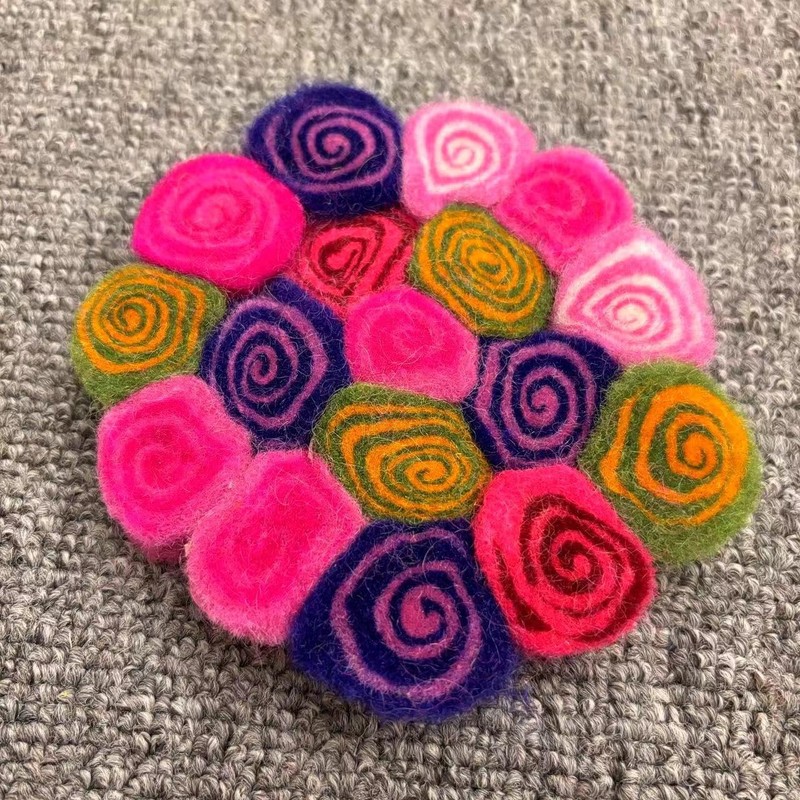 Felt Coaster for Drinks, Spiral Patterns Drink Coaster for Heat and Cold Resistant, Thick & Durable Hand Wool Felted Coaster (Red)