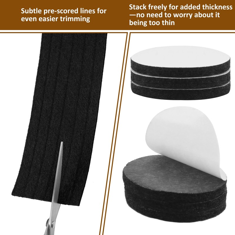 - Cuttable And Stackable:Our furniture pads are made of high-quality felt. The 3mm thick felt roll are easier to cut, and there are slight indentations as cutting guides, allowing you to cut as needed to fit a variety of furniture.. The felt can be stacked on top of each other, so don't worry about the thickness. The 3" x 40" size is enough to meet most of your needs