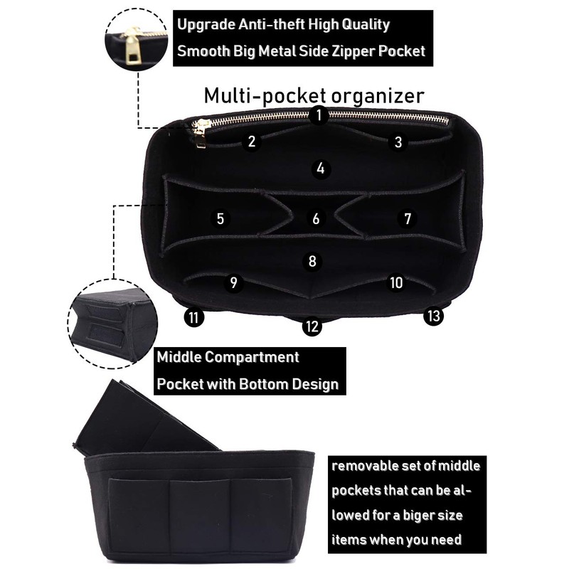 - NEW MATERIAL & removable set of middle pockets : Felt Purse Organizer with High quality and New Materials are made of Sturdy ,Soft and pliable, Lightweight Felt fabric with removable set of middle pockets