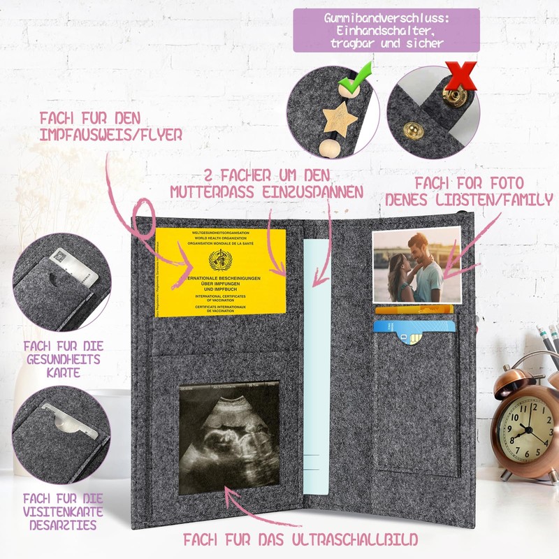 Felt Maternity Log Cover for German Maternity Log Protective Cover for Storing Vaccination Certificate etc., Cute Gift for Pregnant Women and Future Mothers (German Dark Grey)