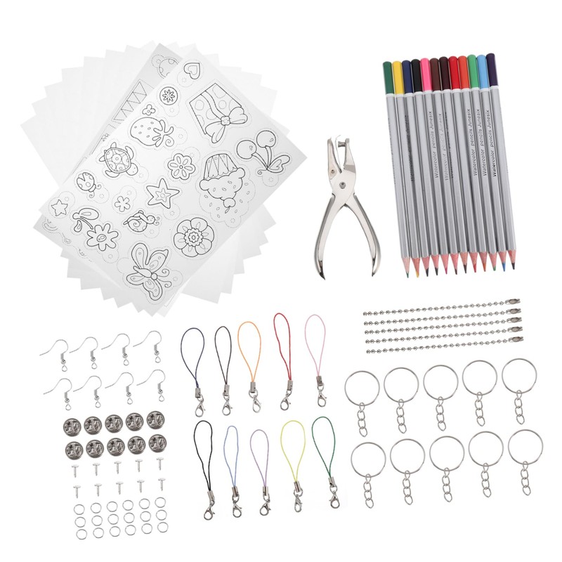 keyring with chain This DIY heat shrink sheet kit, made of the quality material, is safe and practical.colored pencils children, it is great to make DIY charms, earrings, keychains, jewelries, ornaments and more.Shrinky Art Paper kit Also, it could develop your kids’ practical ability and cultivate their patience and concentration