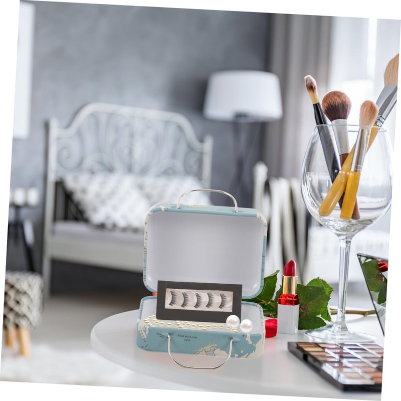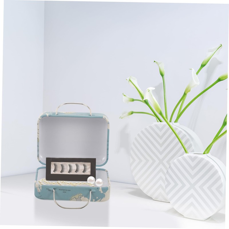FELTECHELECTR False Eyelash Storage Case Suitcase Compact Jewelry Carrying Suitcase Mini Retro Trinket Box for Party Bags