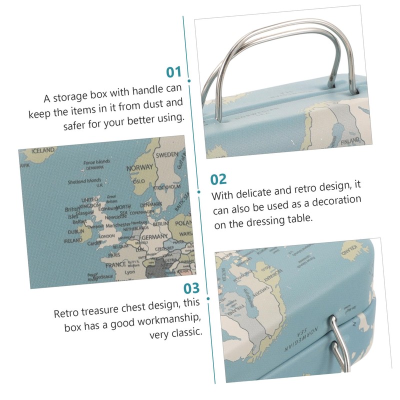 • Retro sundries organizer-- detailed workmanship and globe map appearance will ensure popularity and practicality of this jewelry box,jewelry storage tin