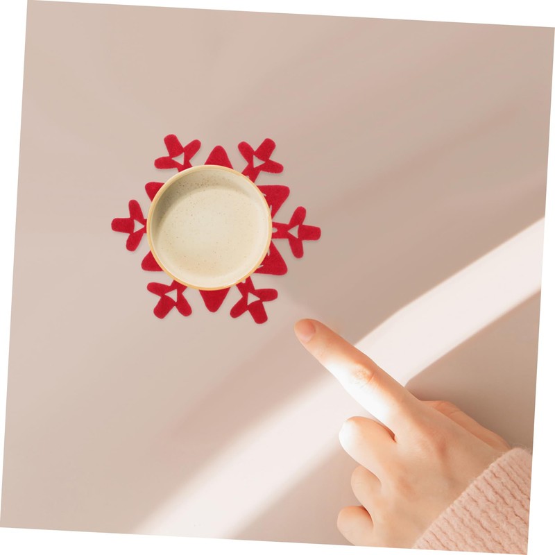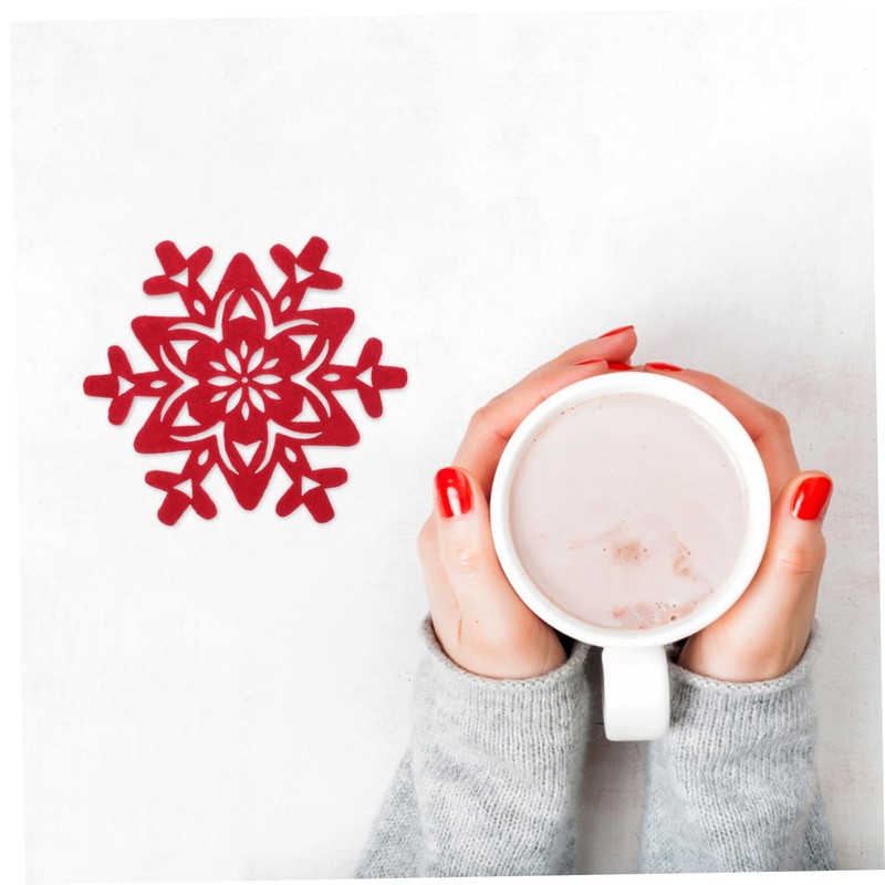 holiday round coasters Manufactured with felt material, and practical enough to use.drink coasters They also are good decorations for your dining table.christmas drink coasters This is a set of Christmas felt coasters.table They can create festive atmosphere for your Christmas party.Christmas With the snowflake shape, these cup mat are creative and lovely