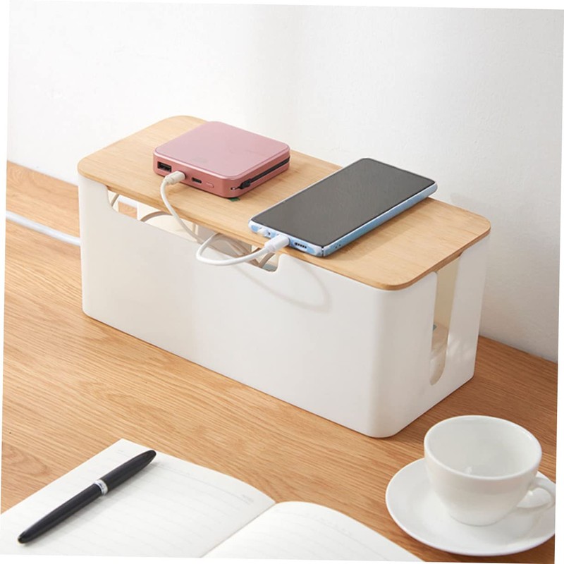 FELTECHELECTR Simple Install Cable Management Box Bamboo Cover Organize Power Cords Data Cables Sockets Large Capacity