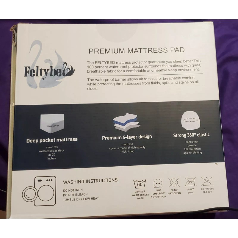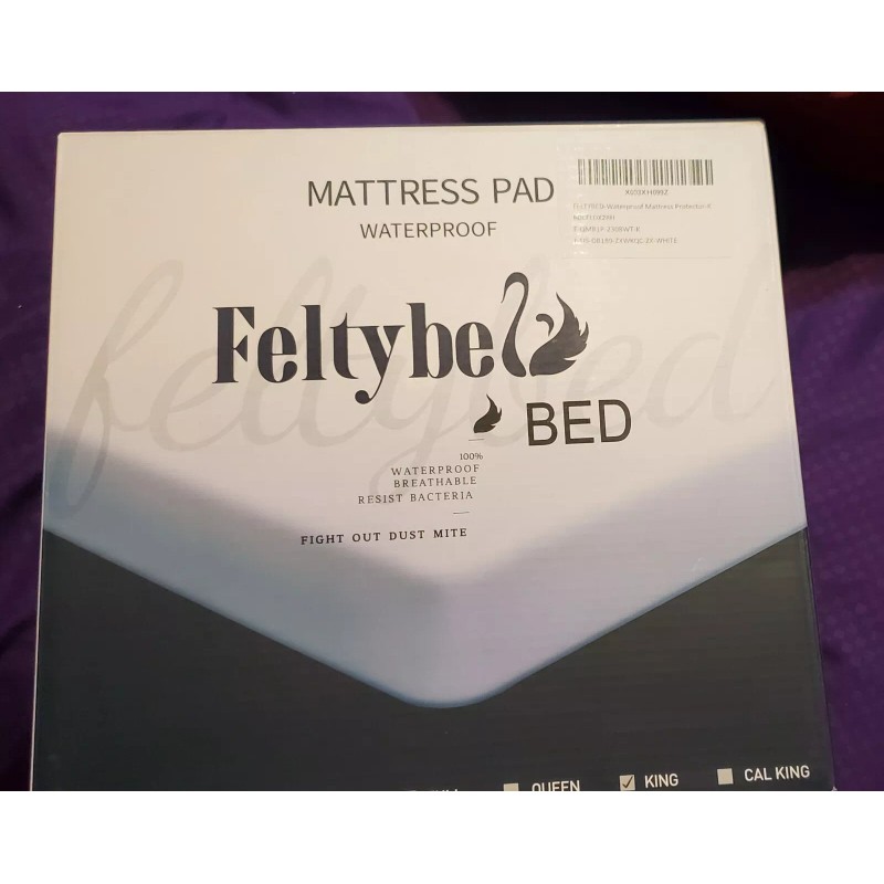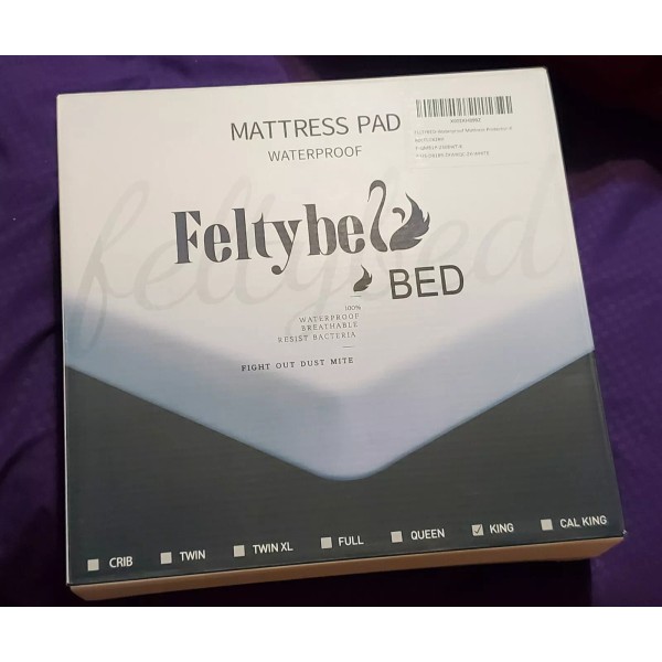 Feltybe Waterproof King Size Mattress Pad is made of soft and breathable microfiber material. It is waterproof and resistant to bacteria. This mattress pad is machine washable and has no closure. Perfect for adding comfort and protection to your bed, especially in the bedroom.