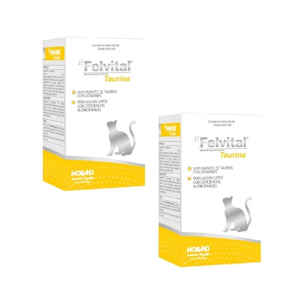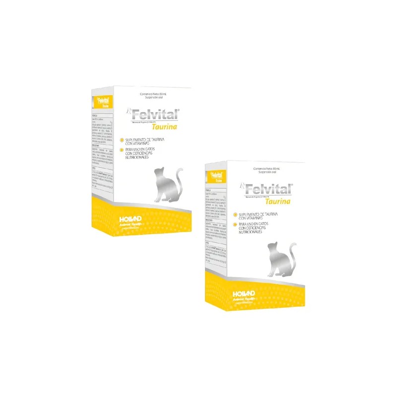 Mantén a tu felino en plena forma con el pack doble de Felvital Taurina 80 ml de AlphaChem, diseñado especialmente para el bienestar de tu gato. Este suplemento de vitaminas en solución oral es un complemento esencial para la dieta de tu mascota, proporcionando los nutrientes necesarios para mantener su salud cardiovascular, visual y reproductiva en óptimas condiciones. La taurina, un aminoácido crucial en la alimentación felina, es el componente principal de este producto, asegurando que tu gato reciba la cantidad adecuada que no siempre es posible obtener solo de la alimentación.