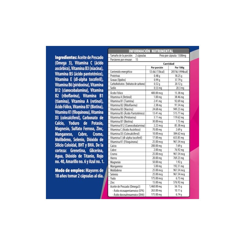 FEM MultiVit Multivitaminico para Mujer con Omega 3 30 Capsulas Softgels Complemix Fem Conjunto de Vitaminas, Minerales y Omega 3 para la Mujer...