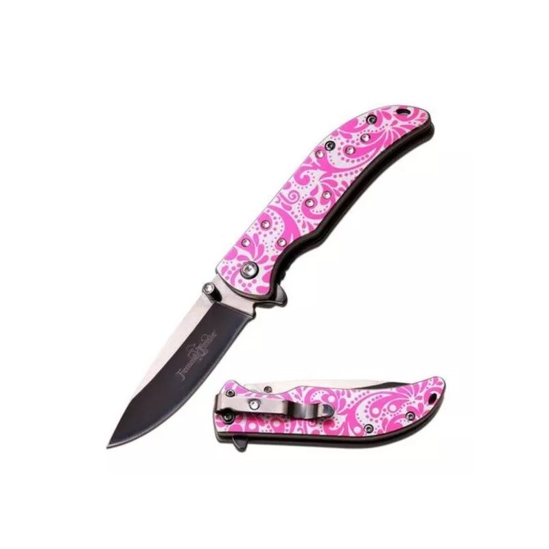 Fem Women's Danity Pink Paisley w Rhinestones Knife New