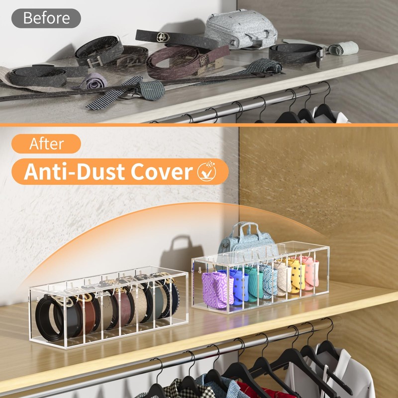 FEMELI FEMELI Belt Organizer, Acrylic Belt Storage for Closet with Dust Cover, Clear Belt Container Display Holder for Drawer, Clear Belt Tie Case Hanger with 7 Compartments for Women Men Home