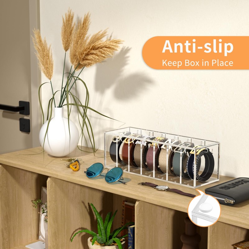 - [ Multi Functional Belt Case ] The acrylic clear container can neatly store your belts, ties and bow ties and other products in your closet, container and table. Looks more tidy and organized for your room. You can give it as a gift to your family.