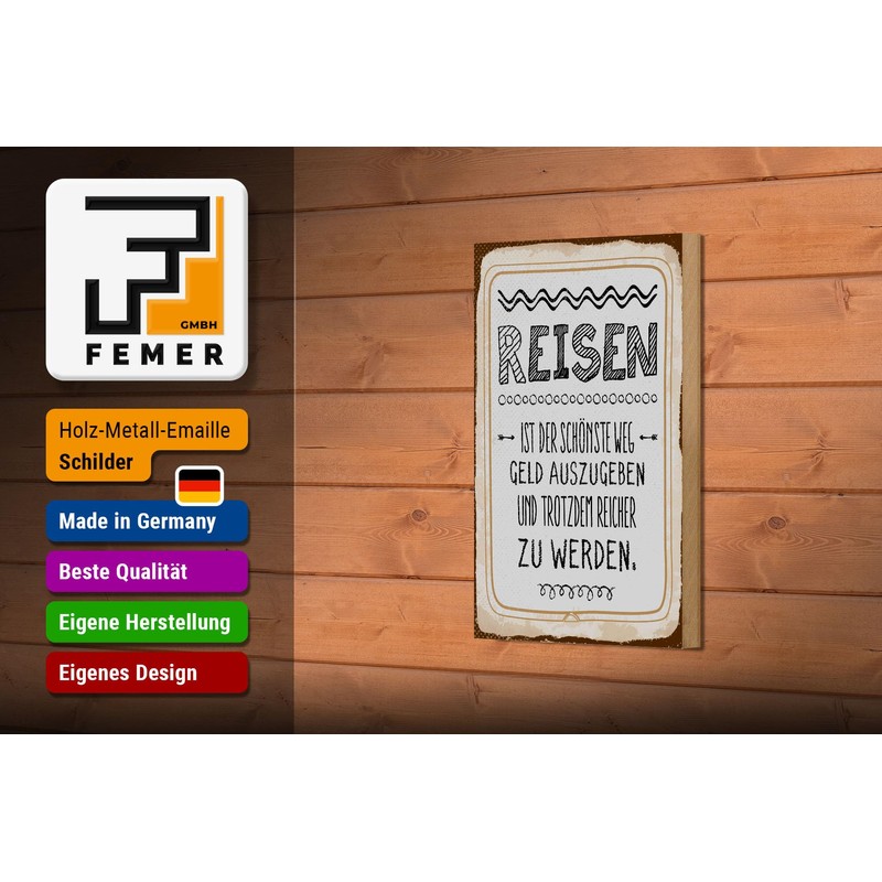 Femer Holzschild Spruch 12x18 cm Reisen ist der Schönste Weg Deko Schild